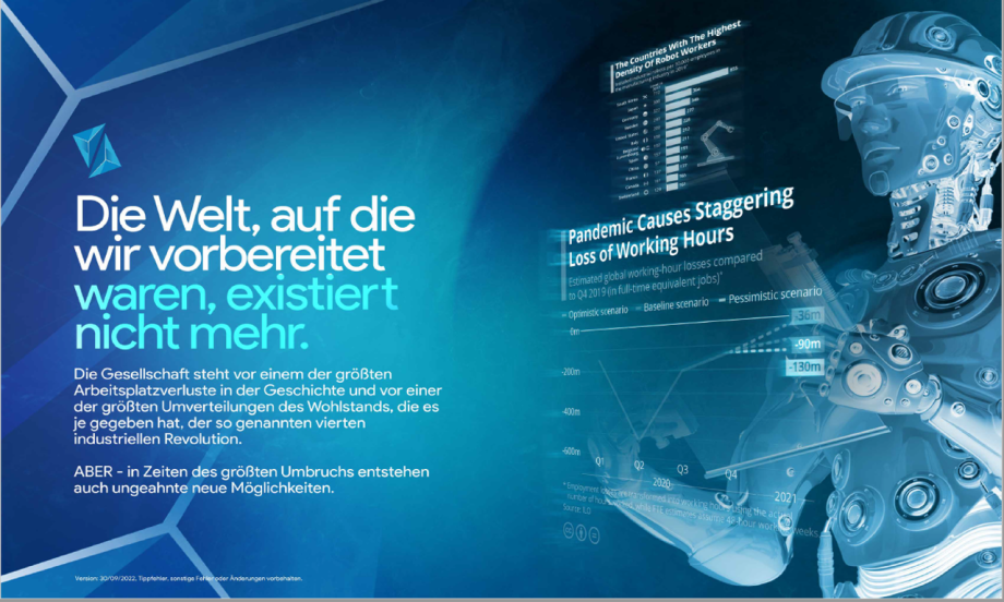 Unsere Gesellschaft und unsere Arbeitswelt steht im Umbruch und wohl vor der größten Herausforderung seit dem Beginn des Internetzeitalters. Wir stehen Dir beratend zur Seite, informieren Dich